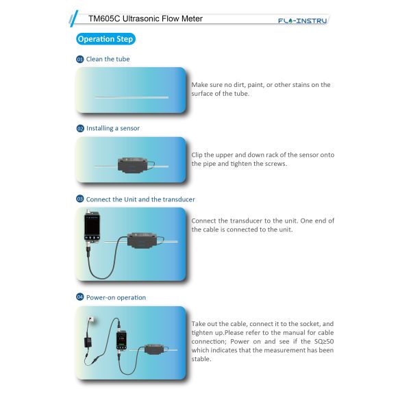 | Ultrasonic Flow Meter With the world's most advanced time measurement chip (Time resolution up to 20ps) | The transducer can measurement the flow of liquid in plastic pipes quickly and reliably. The clamp-on transducer has no contact with the medium and is suitable for applications with hygienic standards, such as liquid flow monitoring in biopharmaceutical_processes, medical equipment, and semiconductor equipment production. | |